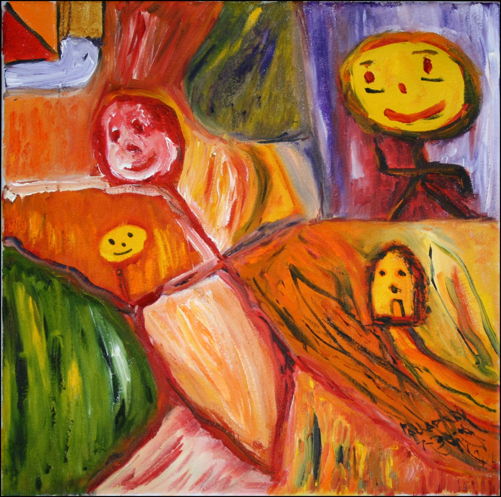 3 Stick Figures, Oil Painting